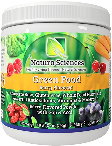 Naturo Sciences Natural Greens - Complete Raw Whole Green Food Nutrition with Super Powerful Antioxidants, Vitamins, Minerals with Goji and Acai - Amazing Berry Flavor 8.5oz (240g) 30 Servings Reviews